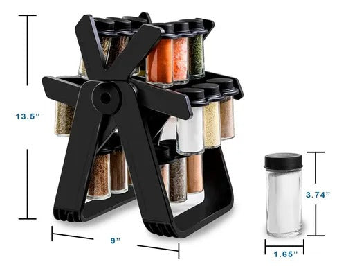 🧂 Organizador Giratorio de Especias – 18 Tarros de Vidrio + RotuladorMantén tu cocina ordenada, elegante y funcional con este organizador giratorio de especias de 360°. Su diseño moderno no solo optimiza el espacio, sino que también te brinda un acceso fácil y rápido a todas tus especias favoritas.🌟 Características principales:✅ Diseño giratorio 360°: Accede a cualquier tarro sin esfuerzo, ideal para cocinar con agilidad y estilo.✅ 18 tarros de vidrio incluidos: Almacenamiento generoso para mantener todas tus especias, hierbas o condimentos bien organizados.✅ Estructura resistente y estable: Fabricado con materiales duraderos y de calidad alimentaria (ABS + PP + vidrio).✅ Incluye rotulador: Etiqueta tus tarros fácilmente para identificar cada ingrediente de un vistazo.✅ Estilo moderno y compacto: Aporta un toque decorativo y funcional a tu cocina o despensa.📐 Especificaciones técnicas:Material: ABS + PP + vidrioDimensiones del estante: 23 x 26 x 34 cmTamaño de cada tarro: 9.5 x 5 cmPeso neto: 2.4 kgPeso bruto: 2.7 kgColor del estante: Negro (moderno y elegante)Capacidad: 18 frascos para especiasDimensiones de la caja: 27.5 x 26.9 x 13.2 cm